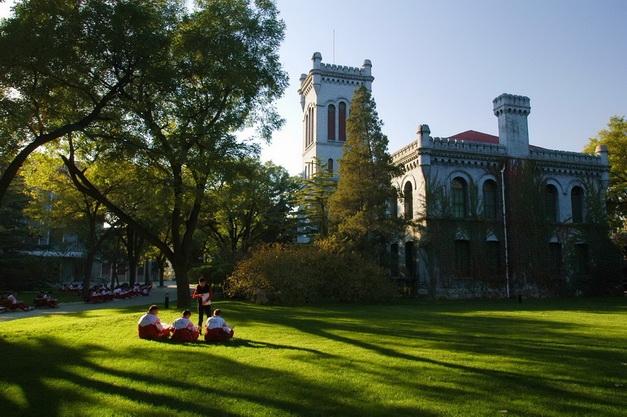 年轮是树木的沉淀,皱纹是岁月的礼物。走进潞河中学,湖光山色、翠柏参天,奇花绿草覆地、通衢曲径散落其间。郁郁葱葱的爬山虎沿着建筑檐壁层层漫开,微风拂过,仿似绿色的波纹垂直荡漾在眼前;成群结队的鸟儿,戏花弄水,碑、亭、湖、山皆留有她们的身影,待欢畅时,百鸟齐鸣,热闹非凡。在这座建校时间比北京大学还要早的园林式校园里,厚重的历史文化底蕴与浓郁的现代学府氛围萦绕在你我之间,置身其中,不由心旷神怡,乐而忘返。