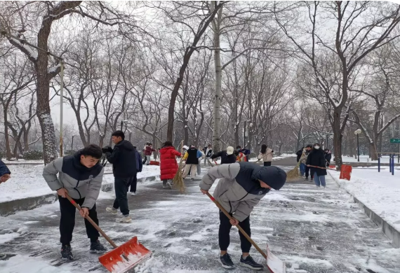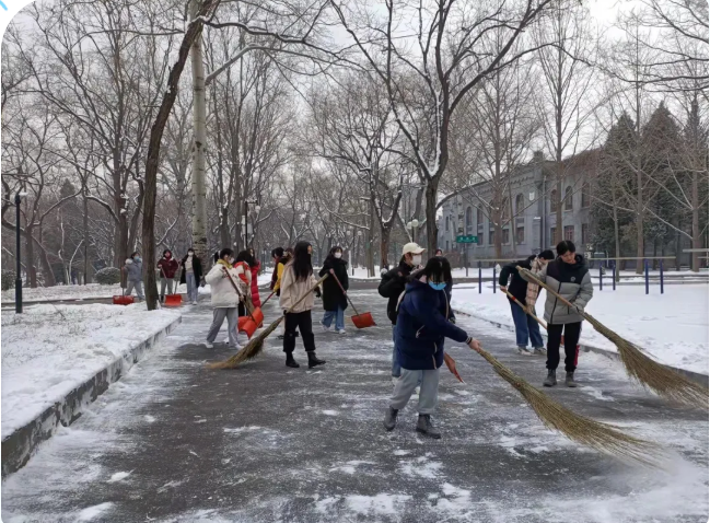 这次除雪活动,同学们用自己的双手不仅为留校的师生们提供了一个方便、安全、洁净、和谐的校园环境,还培养了孩子们感恩母校的可贵品质,同时充分展现了潞河学子蓬勃向上的精神风貌。