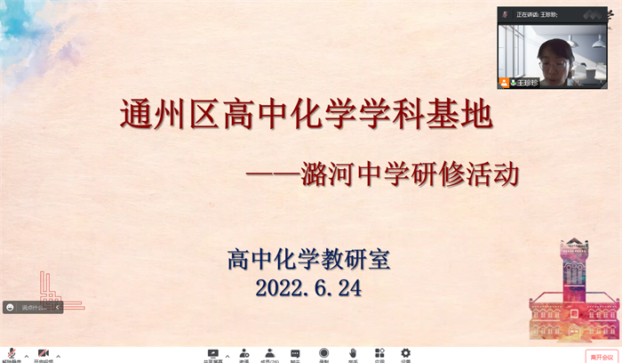 2022年6月24日上午,高中化学教研室开展了“以大概念引领的深度学习下的自然资源综合利用单元教学实践——通州区学科基地建设之高中化学学科”的课例研讨活动,本次研修活动采用线上的方式进行,潞河中学高中化学学科基地责任教研员尹佐老师、通州区教师研修中心研修员王姝玮老师、杨艳华老师和全区高中化学教师参加了本次活动。