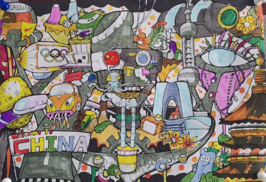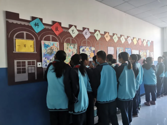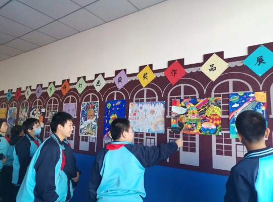 教学楼的公告栏中展出了一幅幅想象奇特、色彩斑斓的获奖科幻画,为孩子们的梦想插上了翅膀,成为校园里一道靓丽的风景线。走近作品展示长廊,呈现在眼前的不仅仅是一件件“无声胜有声”的作品,更是学生们对未来科学技术蓬勃发展的信心,同时也凝聚着学生们的美育成果。