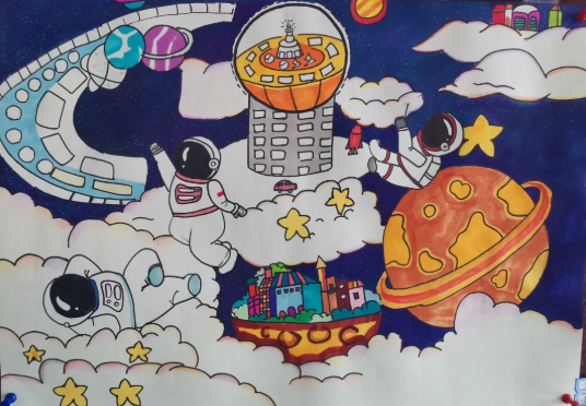 此次活动中学生们积极参与并展开了大胆丰富的想象,创作出一幅幅主题鲜明、构思巧妙、色彩绚丽的画作,将想象中的未来世界绘于笔端。至截稿日期,共收到学生作品50余幅,其中有对宇宙万物、未来人类生活的想象,也有对社会、科学技术发展的希冀。