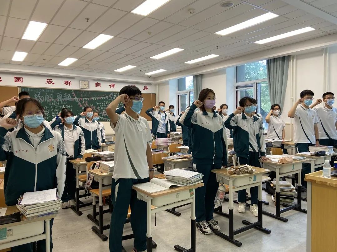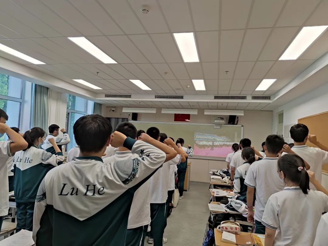 下午15:00同学们在班级教室内通过在线直播方式参加全校的开学典礼。齐唱国歌,重温“请党放心,强国有我!”的誓言。