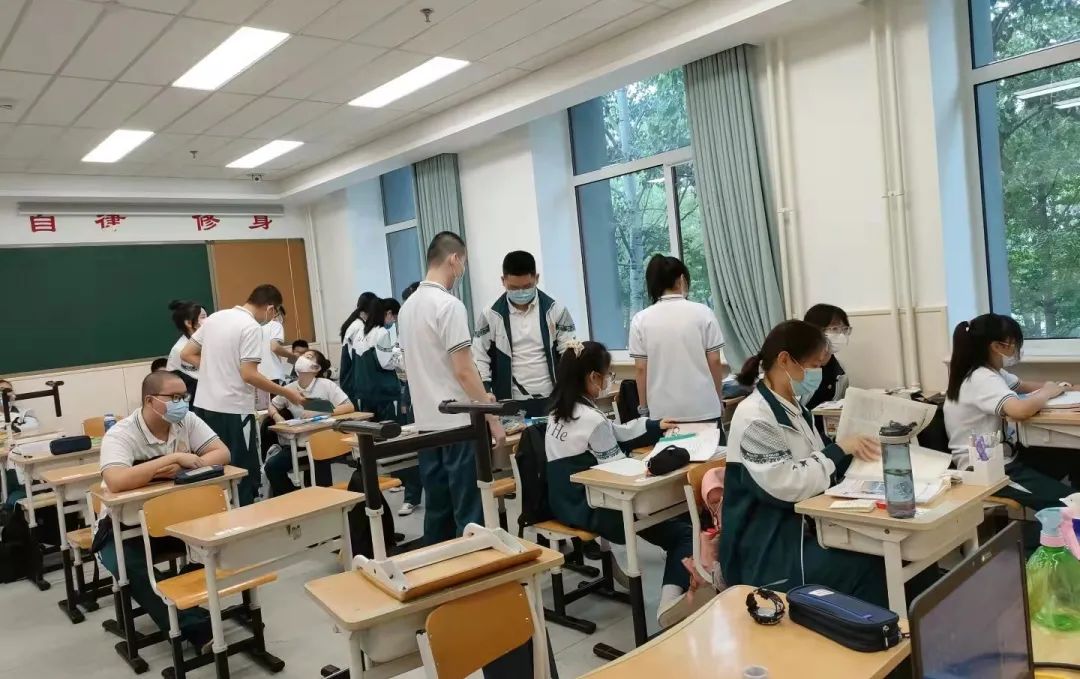 本地生早上8:00开始从东门陆续进校、进班报到、晨检。在班主任和班干部的组织下,收交各科作业、领课表,领书,布置整理教室和个人学习用品等。住宿生进宿舍收拾行李,重新整理床铺物品。提前14天返校的内高生,今天是最后一天观察期。
