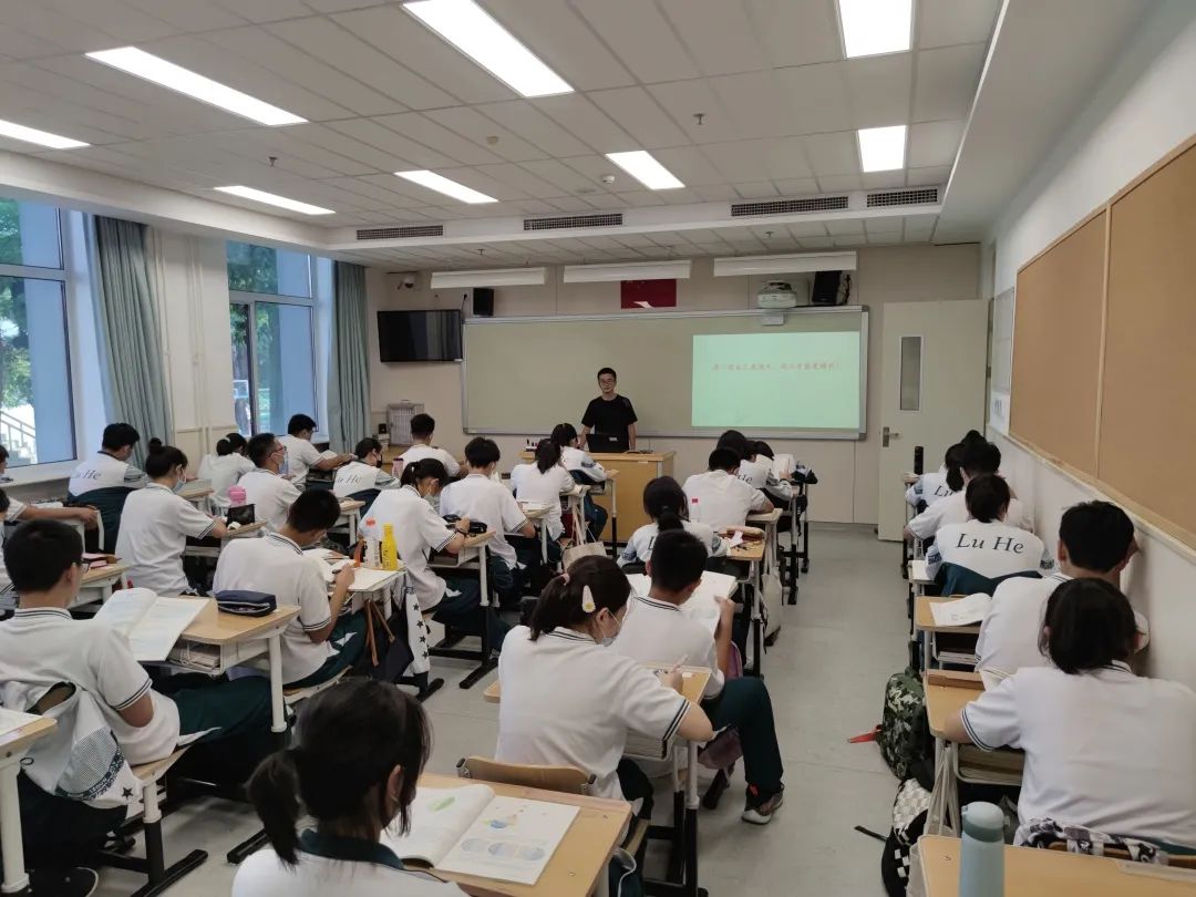 上午10:30高二年级本地生集合在一报,参加了年级的贯彻规范大会,年级主任邵红梅老师主持。邵老师向同学们明确了防疫要求,强调了常规要求,对高二新学期生活提出了建议和寄语。