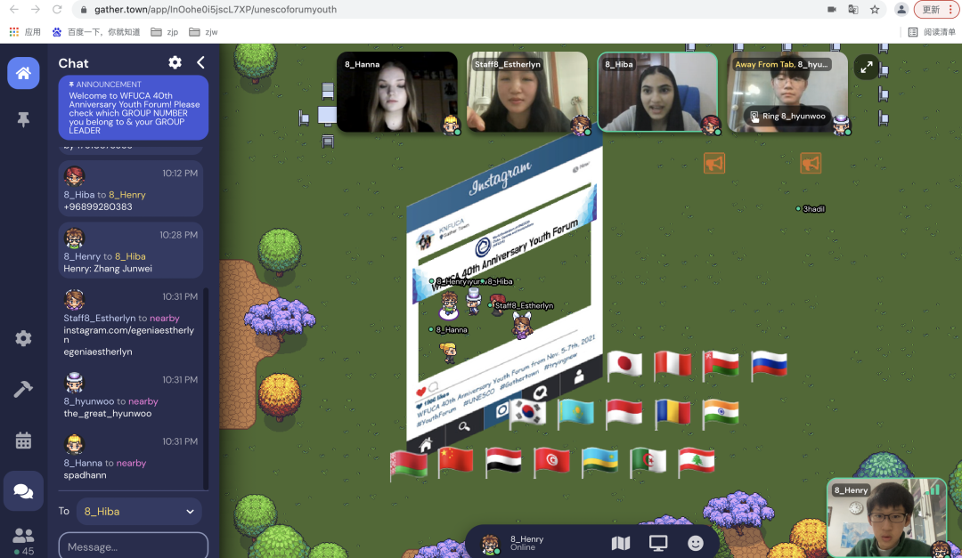 北京时间11月5日至7日,联合国教科文组织俱乐部协会召开青年论坛活动。论坛活动由韩国教科文组织全国联合会主办,来自世界各地的青少年通过元宇宙网站gathertown欢聚一堂,共同商讨世界文化与环境问题。