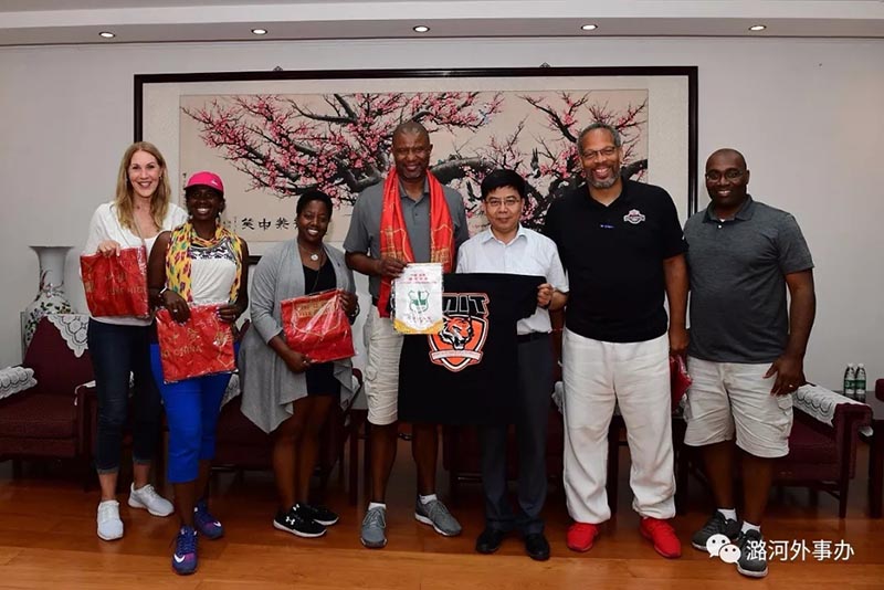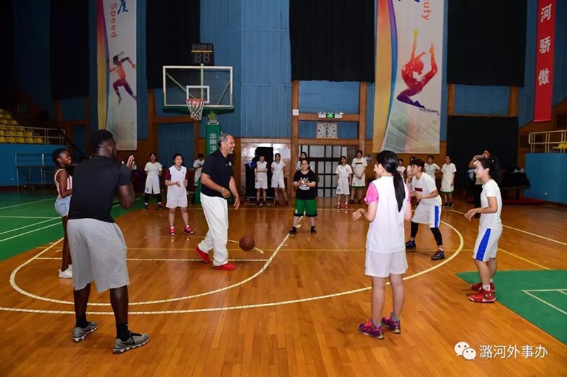 6月13日,我校徐华校长接待杜阿尔特高中女篮一行14人。徐校长向美国客人介绍潞河体育的历史与现代,两校互赠礼品,合影留念。然后,杜阿尔特高中女篮来走进高一1班艺术教室,体验周东岭老师的版画课程。在周老师的指导下,美国小伙伴的版画作品栩栩如生。下午五点到六点,美国女篮教练与队员们来到我校潞友体育馆,与我校女篮队员们共同交流训练。在前NBA球员的指导下,两校女篮队员通过游戏,任务的形式以球会友,促进了解。