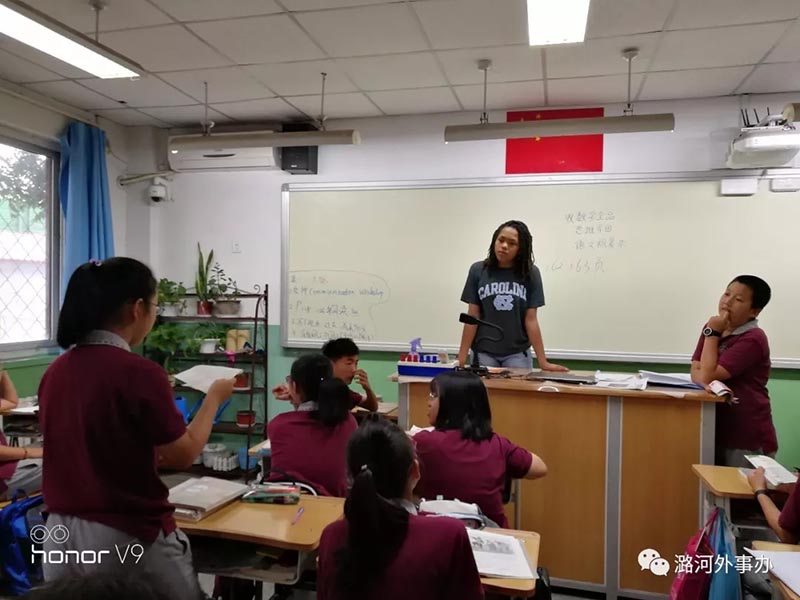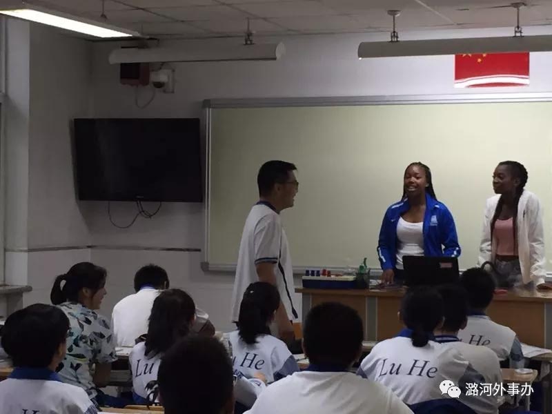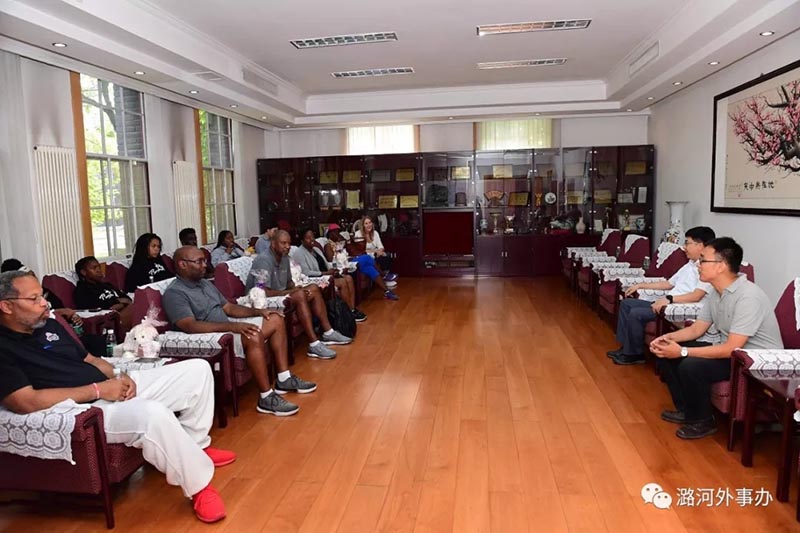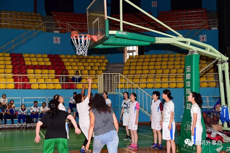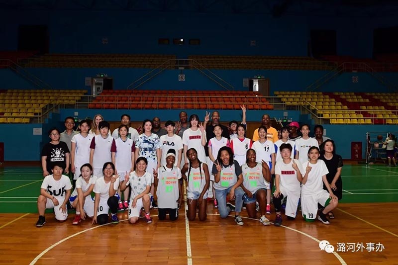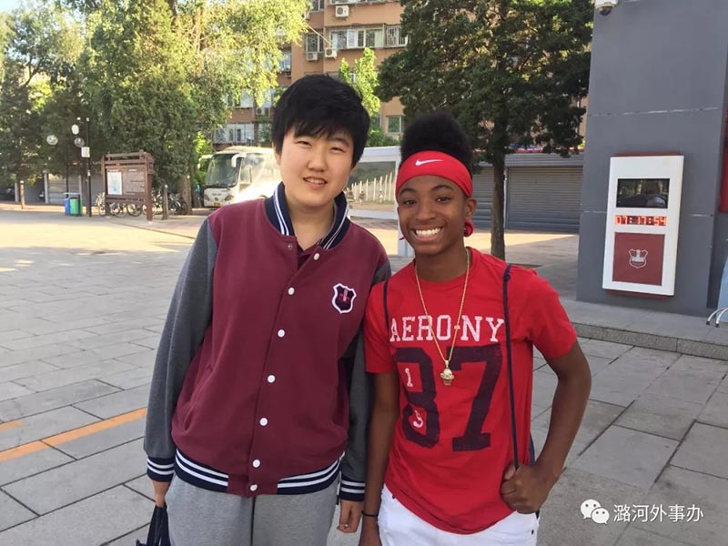 在北京市联合国教科文组织协会的协调安排下,6月12日至14日,美国洛杉矶杜阿尔特高中女篮在杜阿尔特教育署副署长,前NBA球员凯文.莫里斯先生的带领下来到潞河中学交流访问。杜阿尔特高中女篮的队员们住在我校接待家庭,两校女篮队员于6月13日开展了一系列交流活动。