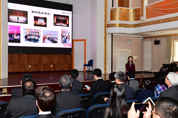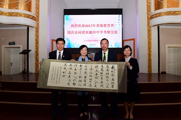 在潞河中学“韵之灵”合唱团优美的歌声中,香港客人们在解放楼礼堂纷纷落座。在欢迎仪式上,徐华校长回忆了潞河中学与香港学校交流的历史,并希望未来在更广的领域开展深入合作;香港教育界国庆访问团副团长招祥麒先生现场做一副对联赠予潞河中学“潞源归德泽恩深厚,河自昊天体性刚柔”,潞河中学将张继良老师的书法作品赠送给香港客人。张继良老师的书法作品摘自潞河中学1927年校刊中陈昌佑老校长的一段话:“我们都承认普通无缺陷的人,不是万能的,可是,同时更承认人不是一无所能的,不过是你我各有所能罢了。若就个人所长,个人所能而施教,是没有不成功的”