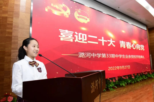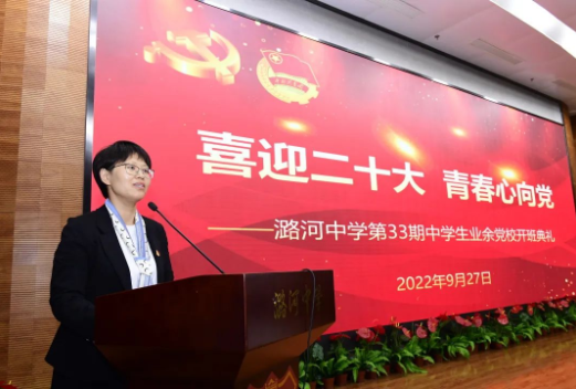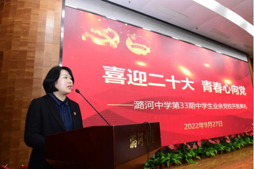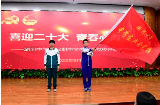为落实立德树人根本任务,为党育人、为国育才,引领潞河学子爱党爱国、传承红色基因,潞河中学团委在学校党总支的指导下开设了学生党校。9月27日,我校隆重举行了“喜迎二十大 青春心向党”——潞河中学第33期中学生业余党校开班典礼。学校党总支委员谢宏春副校长、刘晓蕾主任、团委徐甲书记和高一年级主任汤宪芳、熊洁婕老师以及党校所有指导教师出席了会议。