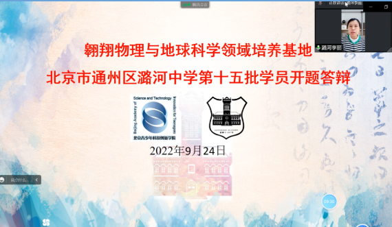9月24上午,翱翔物理与地球科学领域培养基地北京市通州区潞河中学召开第十五批学员开题报告会。清华大学罗先武、唐建石、李辉老师,北京理工大学郝娟、韩立金老师,北京科技大学孙建林、陈章华、孟二超、黄瑛、刘婷婷、杨艳、商北雁老师,首都师范大学方炎老师担任此次开题汇报的评审专家。潞河中学科研处李丽主任和15批学员的基地校指导教师李娟、张晓、赵芳、谷伟凤、刘亚茵老师也参加了开题活动。