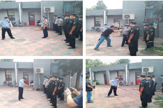 王警官重点对防暴器材使用和一键报警使用进行讲解培训。