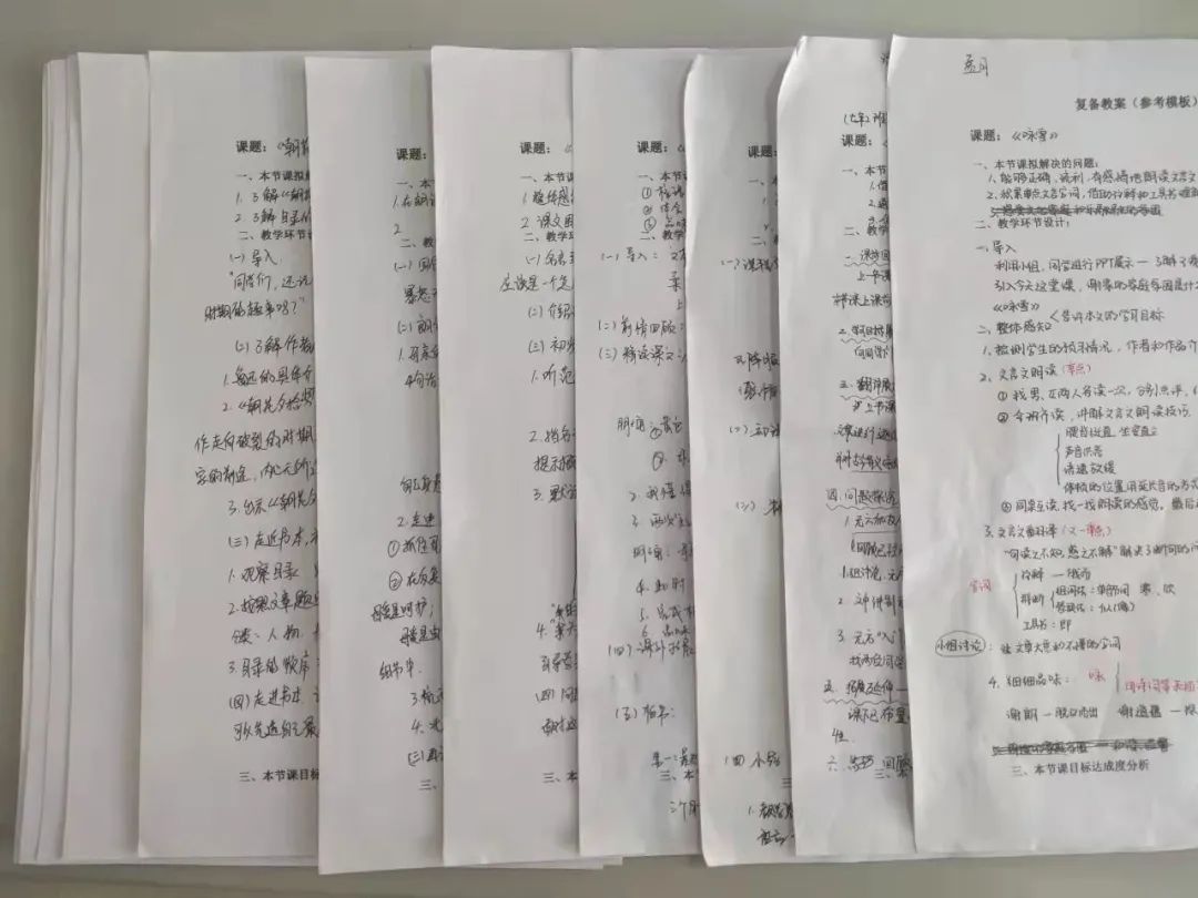 学习方式的改变,有利于学生主动、健康、全面地发展。为了更好地推进课堂模式改革,提高课堂效率,每节课前老师们都会进行复备课,并且撰写复备教案。