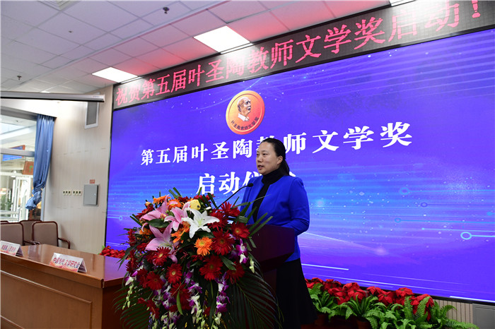 因此,叶圣陶教师文学奖的设立是对左手教书育人,右手文学创作的老师们极大的肯定与褒奖;是对发现并充分挖掘教育的诗性之美的老师们的鼓励与促进,衷心祝愿叶圣陶教师文学奖的评审越办越好,祝愿第五届叶圣陶教师文学奖启动仪式圆满成功!