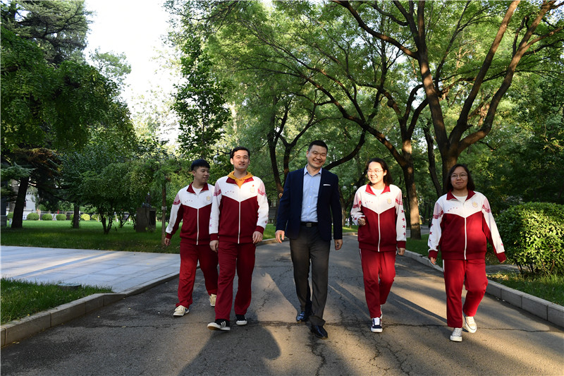 在新疆学生的心目中,马主任是严厉的师长,大家都有些怕他,但是,孩子们知道所有严格管理传递的是实实在在可以感受到的变化:食堂的饭菜更加可口了,宿舍环境更加舒适了,学习资源更容易得到了,课余生活越来越丰富了。马老师真的是急学生之所急,想学生之所想。2020年暑假来临,北京的疫情刚刚平息,新疆的疫情又出现了波动,企盼了那么久要回家的孩子们听到推迟离校的消息时,不禁流下了眼泪,很多孩子愁眉苦脸甚至情绪失控。马老师当机立断,在学校领导的支持下,火速设计了丰富多彩的校内实践课程,京剧、书法、瑜伽、电影……最大程度稳定了学生情绪,并让学生在体验中感受文化和艺术的魅力。终于,学生们如愿平安踏上返疆的列车,马老师悬着的心也终于得到片刻的舒缓。没几天的功夫,马老师又开启了新学期的准备工作,他一如既往,用坚定的工作信念、细致的工作作风,做到了守土有责、守土担责、守土尽责,用实际行动践行了一名共产党员的初心和使命。