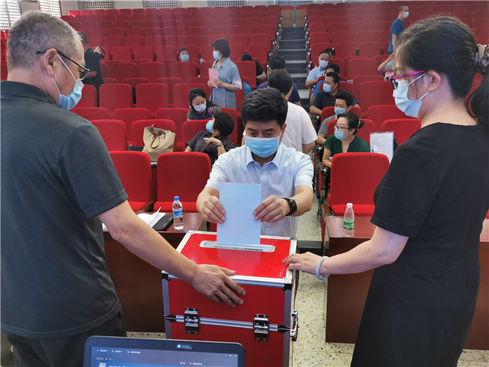 随后大会进行无记名投票表决,监票、检票人员对表决票进行统计。