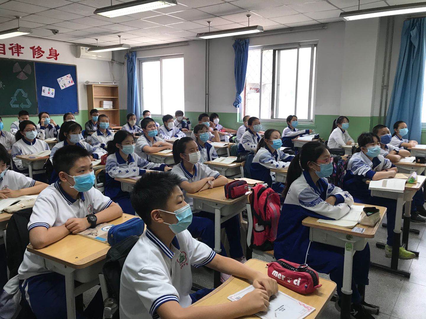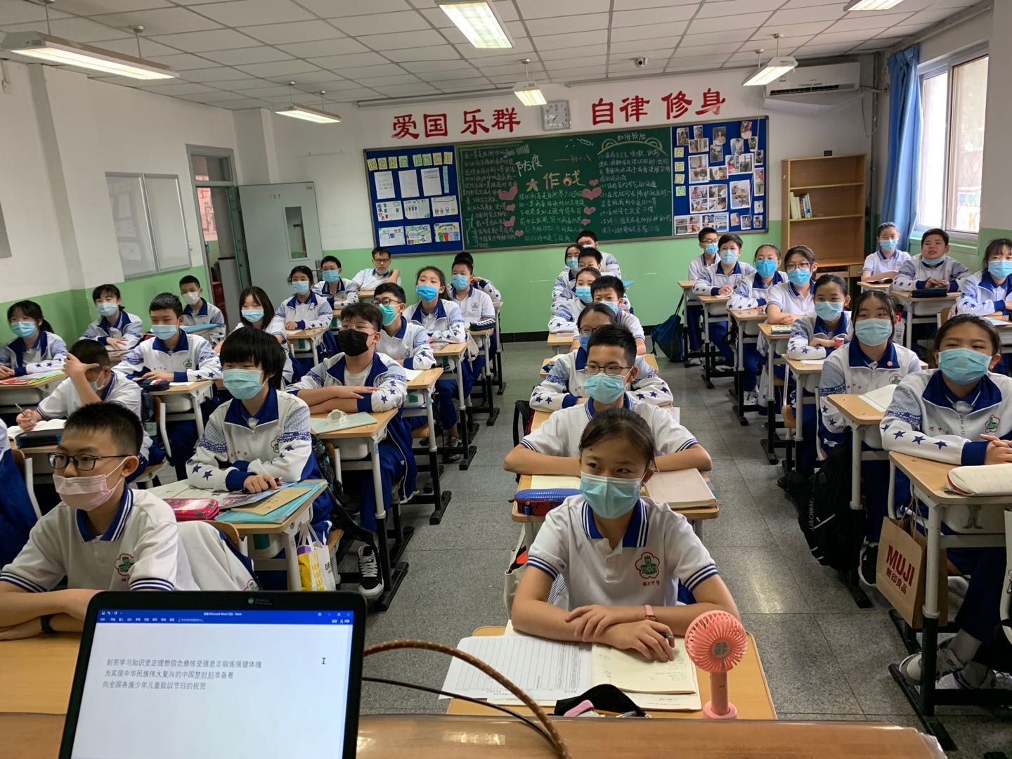 6月3日早晨,潞河中学初一学生集体进行“六一寄语”学习,首先是年级宣传,教育学生关注时事,热爱祖国,做有理想有道德有文化有担当的好少年;之后各班同学齐颂寄语内容,围绕习总书记的关怀话语展开讨论,畅谈理想,并把对习爷爷的承诺写出来贴在墙报上。