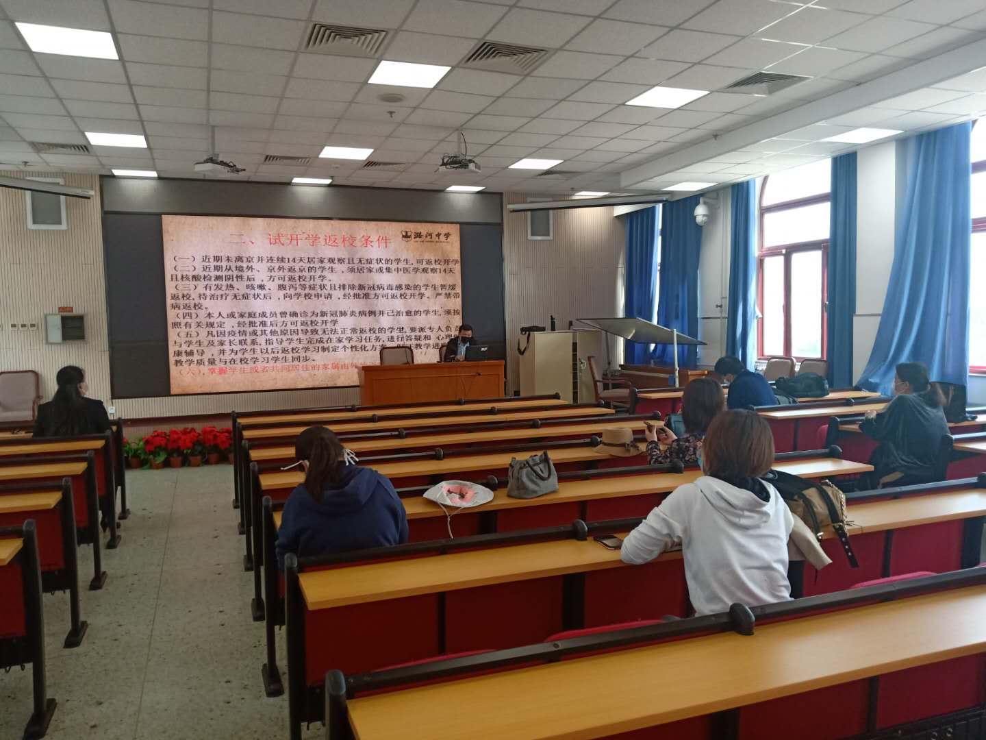 徐华校长分别从建立大局观、熟知突发事件的流程以及严格工作纪律几方面进行了强调,指出返校工作的重要意义,提出了工作意见和建议。李晨松副校长、魏海楠主任对返校前后的教学工作进行了详细说明。