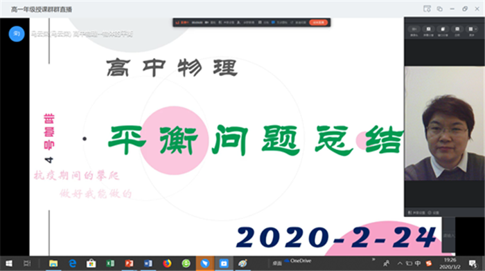一级老师。李老师通过直播介绍居家学习回归课本的基本方法,并通过直播引导学生思维——例如非常规图像问题的处理思路。她强调复习过程中将问题按知识点或者处理方式归类,建立前面和后面知识间的联系。整个直播同学们认真听讲,积极互动,用实际行动诠释“停课不停学”。