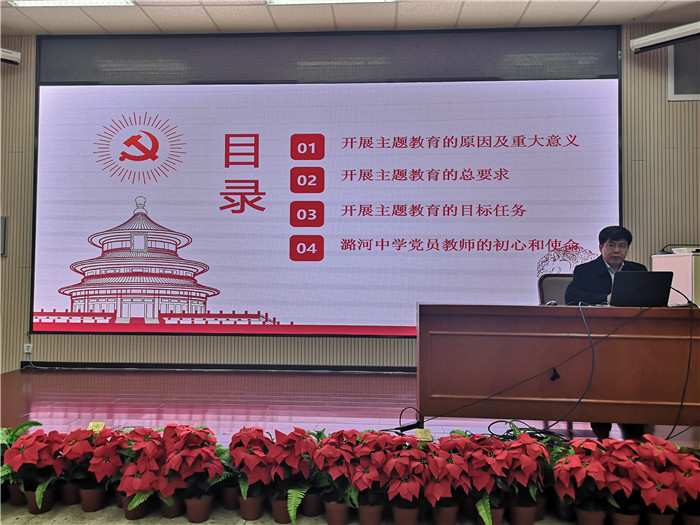 徐华书记就开展主题教育的原因及重大意义,以及开展主题教育的总要求和目标任务做了详细的阐述。明确了潞河中学教师党员的初心和使命。
