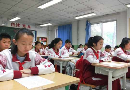 当我们还沉浸在美景中的时候,不知不觉已来到了第一个要录音的班级:初一七班。班主任张雾明老师告诉我们,学生们对于此次的录音活动非常重视,连清明节假期都在家里练习,以求达到最好的效果。