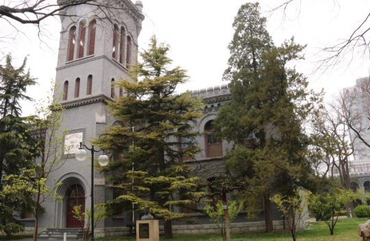 进入学校后,我们为眼前的美景所惊讶,原来,古朴典雅的潞河中学,创建于1867年,至今已有152年的历史。刚刚还令人烦闷的阴雨天也添上了“浓墨重彩”的一笔,让这幅画卷更具韵味。同行的同事们互相打趣道:“这是中学吗?太美了!”