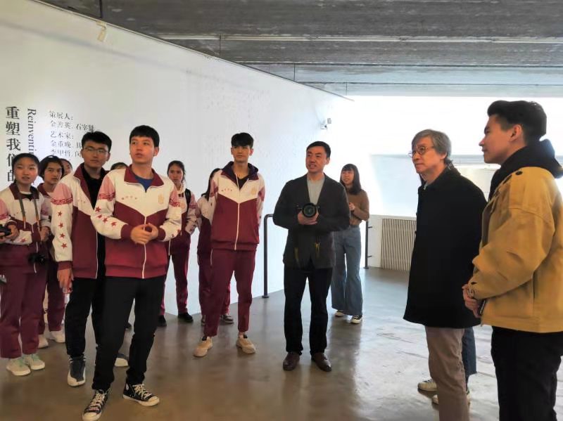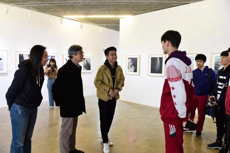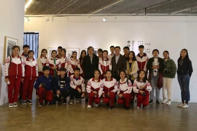 在这次的活动中,摄影社的师生还有幸见到了参展艺术家具本昌老师,他是被韩国摄影写入教科书里的教父级摄影师,目前在韩国庆以大学的摄影摄像学部担任教授。他的作品擅长抓住每一个脆弱的时刻,试图揭示生命中看不见的气息。在参观完具本昌老师《呼吸》系列作品后,能感觉到那种探讨生命和时间意义的冲击力扑面而来。同学们还向具老师提出了问题:艾克拉木同学特别关注如何抓住拍摄对象,阿尔瓦日斯同学特别关注作品中如何表达丰富的情感,如何表达生命的力量?具老师对这些问题都一一进行了详解。最后当杨老师提出希望具本昌老师给孩子们一些拍摄建议时,他说:“我们一定要多学习,多看报纸多看新闻,多关注社会,尤其是热点问题,这样创作出来的作品才有深度。更重要的是,拍摄作品前首先要感动自己,然后才能引起别人的共鸣。”具老师非常高兴在中国遇到这样一群爱摄影的年轻人,他还表示非常期待看到大家的作品。