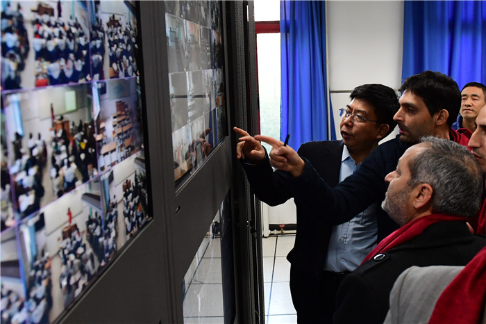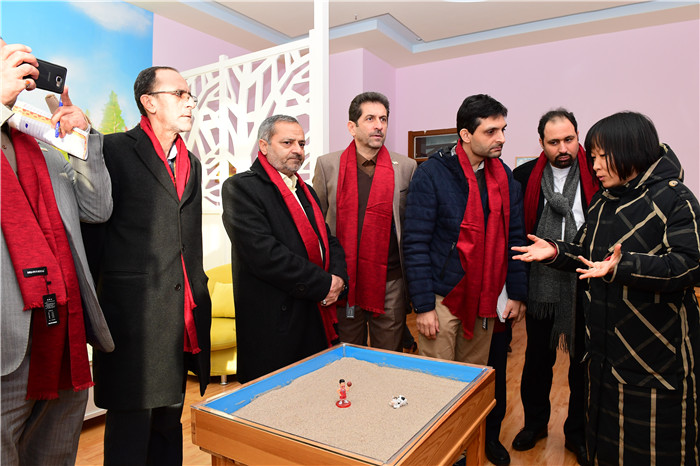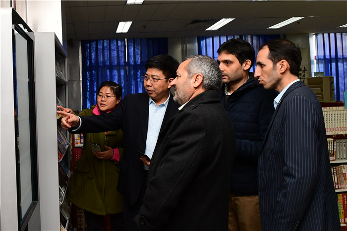 随后,徐校长引领伊朗客人来到仁之楼,先后参观图书馆、中国校园文学馆、心理咨询室、网络中控室、汽车模拟驾驶室、天文教室及计算机教室。在图书馆,伊朗客人亲身体验通过扫描二维码下载自己喜爱的书籍;在校园文学馆,老师们为伊朗客人献上文学哈达,表达我们的热情;在心理咨询室,我校刘亚茵老师向伊朗客人介绍我校心理社团建设情况,并就伊朗客人感兴趣的生涯规划话题与客人交流;伊朗客人很喜爱我校的天文教室和汽车模拟驾驶室,亲身体验各类教学设备。