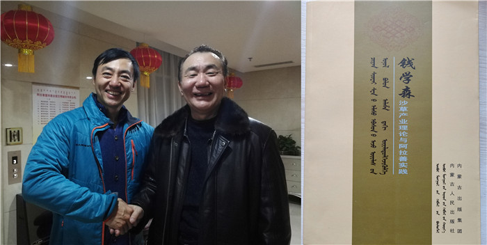 当巴图主席听说我校成立了钱学森班后,立即赠出了由其编辑出版的《钱学森-沙草产业理论与阿拉善实践》一书,并提到,钱学森先生对于当地沙草产业的发展有着关键的作用,这也可以说是阿拉善盟与潞河的一种缘分。