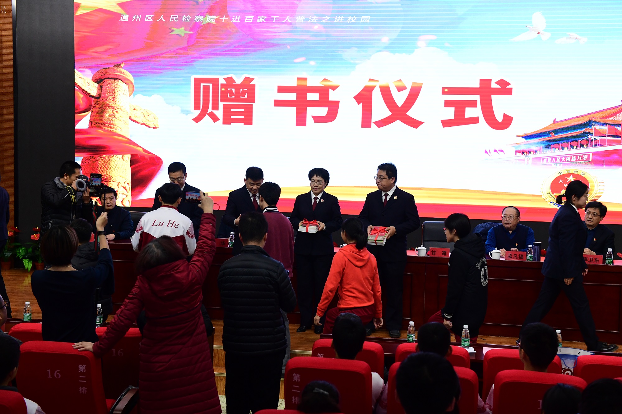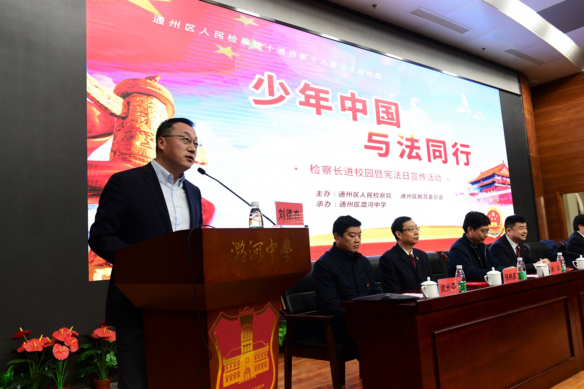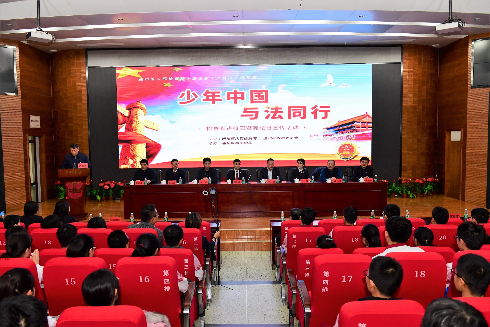 12月3日下午,在12.4第五个“国家宪法日”来临前夕,区教委、区检察院联合组织开展了“少年中国 与法同行——检察长进校园暨宪法日宣传活动”,活动启动仪式在我校进行。区检察院、区教委相关领导、部分家长代表、潞河中学高一年级全体学生参加了活动,活动由区教委副主任刘德杰主持。
