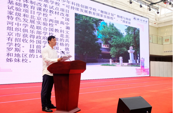 颁奖大会上中国教育技术协会常务副会长张少刚同志介绍了本次VR设计创意活动的意义与收获。中央电教馆副馆长韩骏给予了本次活动高度的评价。北京教育网络和信息中心史陈新副主任,北京市教育委员会基教二处周航副处长和北京市教育学会程舟副秘书长分别做了发言。我校杨海涛老师作为参赛指导老师前去领奖,并在大会上做了发言,他从指导学生完成作品的过程,师生在这次活动中的收获,以及我校在近几年来现代教育技术辅助教学改革方面做的工作和取得的成绩等几方面进行了分享,使大家对潞河中学有了更深入的了解。