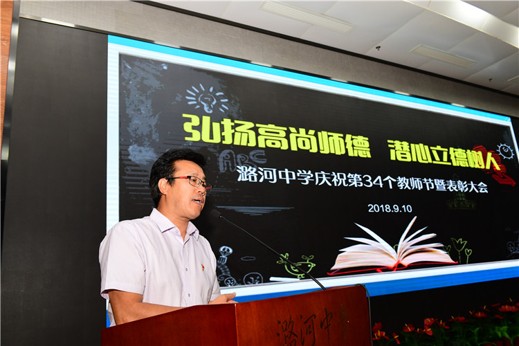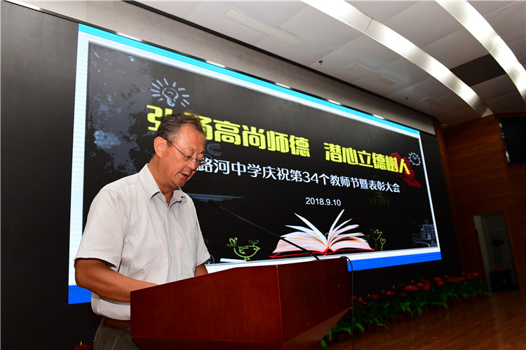 副校长谢宏春宣读《潞河中学关于表彰2017—2018学年度“优秀班主任”的决定》。并号召全体教职工向受表彰的班主任学习,为培养德智体美劳全面发展的,具有“健全人格”的潞河学子而忘我工作。