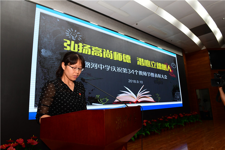 9月10日,在第三十四个教师节来临之际,我校隆重召开以“弘扬高尚师德 潜心立德树人”为主题的庆祝教师节暨表彰大会,隆重表彰在教育教学方面做出突出贡献的先进个人。
