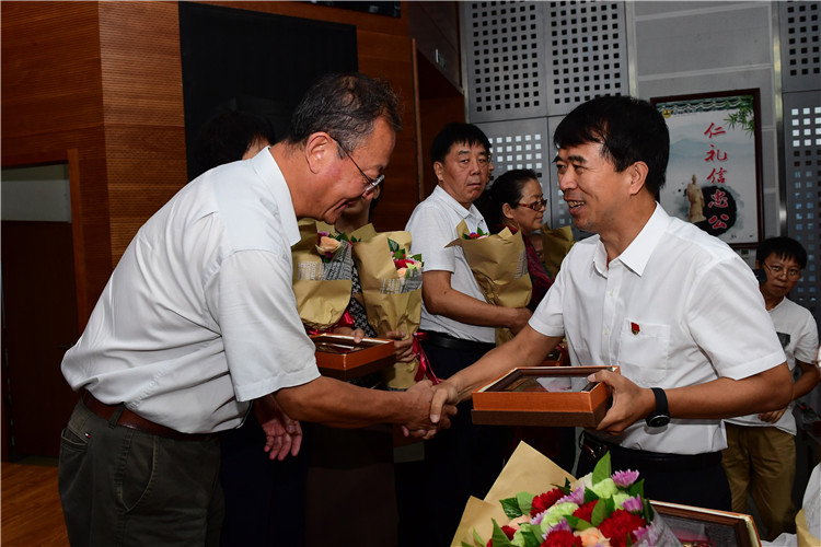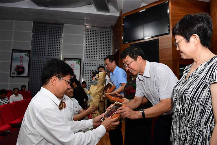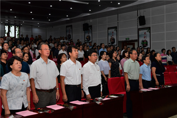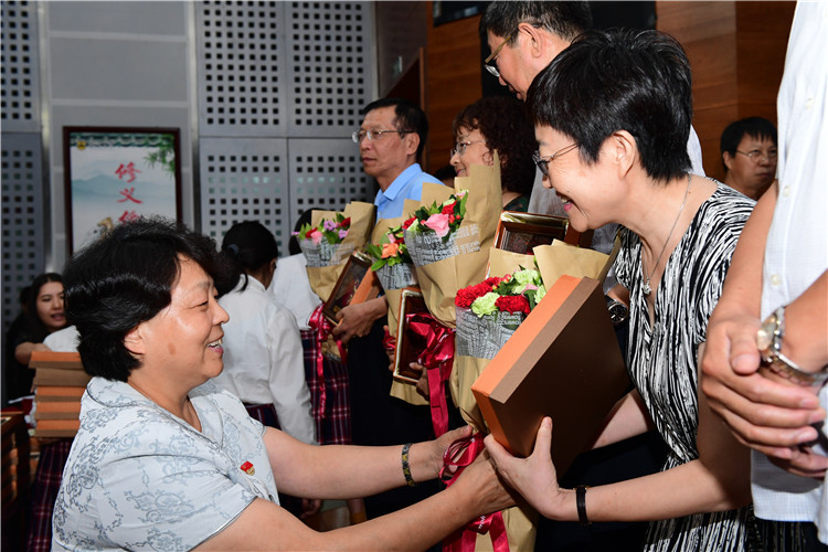 总支副书记孟洪峰宣布《潞河中学庆祝第34个教师节暨表彰大会》正式开会,全体起立,奏唱国歌。“三寸粉笔,三尺讲台系国运;一颗丹心,一生秉烛铸民魂。”我校特为历经34个教师节的在校教职工颁发纪念品,向人生的筑梦者致敬!