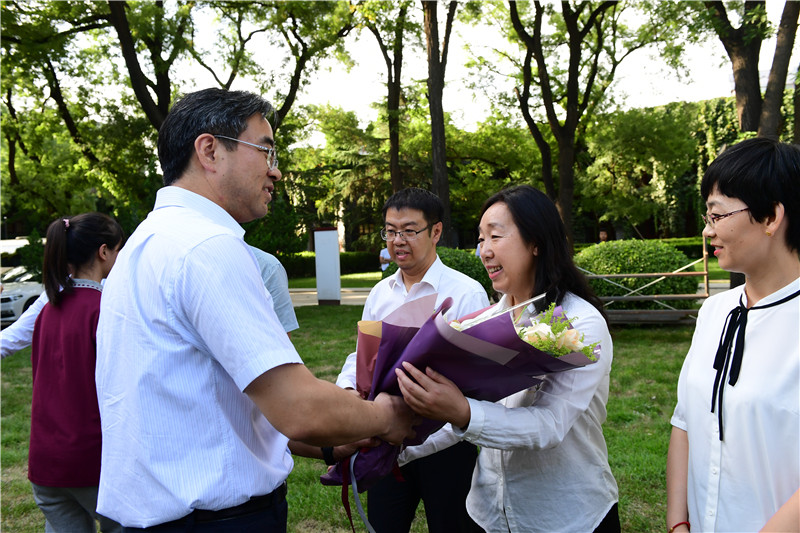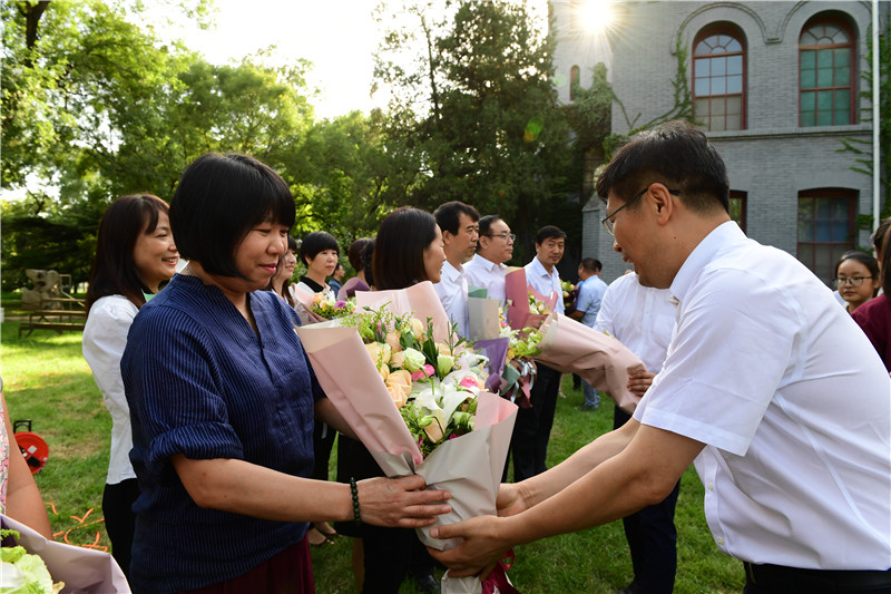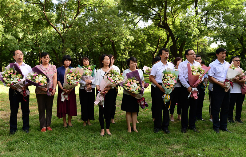 区领导一行参观了红楼、纪念铜像、图书馆、校史馆等地,徐华校长为领导介绍潞河中学的百年历史和发展历程。随后,领导们慰问了通州区29名优秀教师代表及潞河中学28名经历过34个教师节的教师代表,并向他们赠送鲜花。