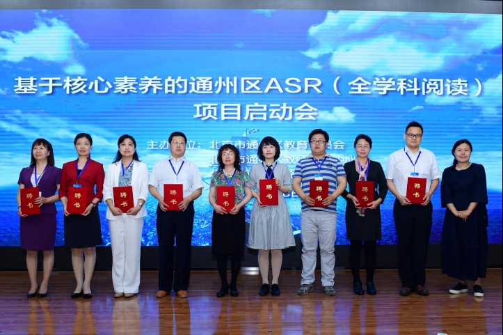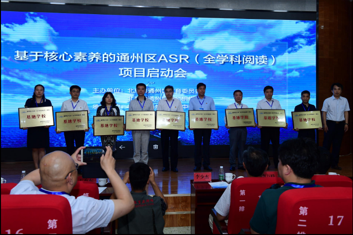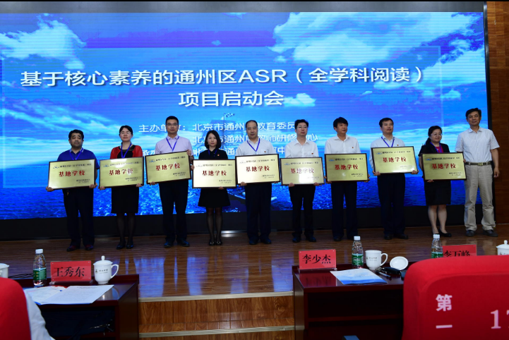 ASR项目启动大会在潞河中学吟诵社的表演中拉开序幕。随后研修中心李万峰院长对通州区ASR(全学科阅读)”项目方案进行解读,李少杰主任、王秀东副主任为项目基地学校授牌,专家周群老师并为学科工作坊指导教师颁发了证书。潞河中学徐华校长、研修中心??老师分别代表基地学校、学科工作坊指导教师发言。