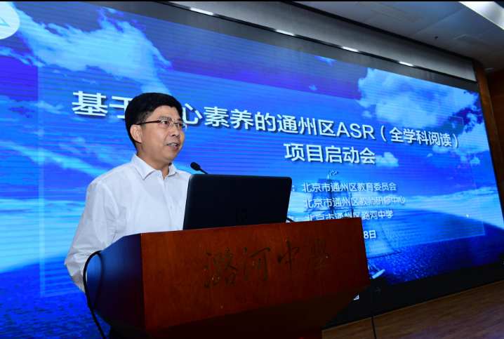 王秀东副主任在讲话中指出启动通州区全学科阅读项目,是适应城市副中心发展需求,聚焦教育内涵发展,深化通州区基础教育综合改革的重要举措。有利于全面提升中学教育教学的质量和品质,深度提升中学生核心素养,办人民满意的教育。