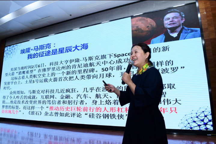 随后市中小学校园阅读促进与推广项目中学组特聘专家周群老师做从《从科学阅读起步,我们的征途是星辰大海》专题讲座。从科学阅读的定义、科学素养、科学阅读的教学策略、科学阅读文本的选择及值得警惕的问题几个方面作了详尽的分析。