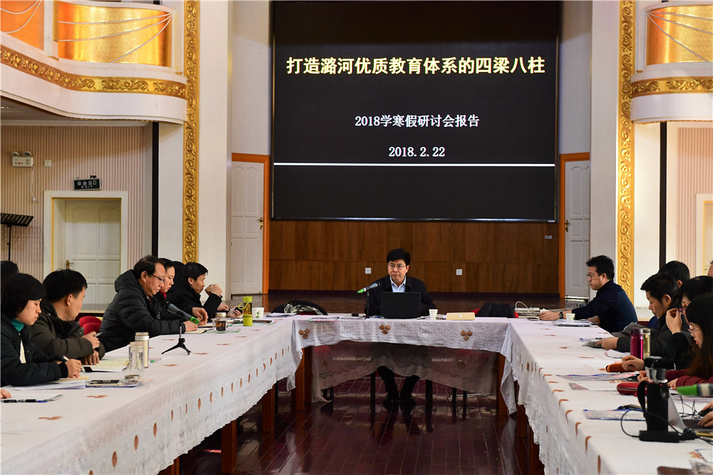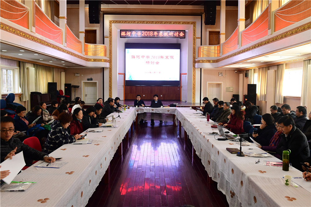 2月22日,潞河中学召开2018年寒假研讨会。中层以上行政干部、教研室主任、年级主任、分支书记、特级教师、市级学科带头人、骨干教师和博士学位教师等近80人参加了此次研讨会。