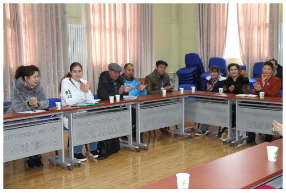 座谈会上,大家首先观看了由校电视台制作的《2017年内高班寒假活动》视频,了解了我校内高班学生的精神风貌与思想状态。随后,谢校长向家长们介绍了潞河中学150年的悠久历史、作为全国首批承办内高班学校的办班经历,以及给孩子们创造的良好的学习生活环境,并请家长们放心。内高办姚老师、高二年级主任梁老师分别从学校特色活动和教学两方面介绍了我校内高班教育教学取得的成绩。为了使来访的家长们更好的理解介绍内容,高二年级阿迪力江同学对座谈进行了转述,会议室里不时响起热烈的掌声。