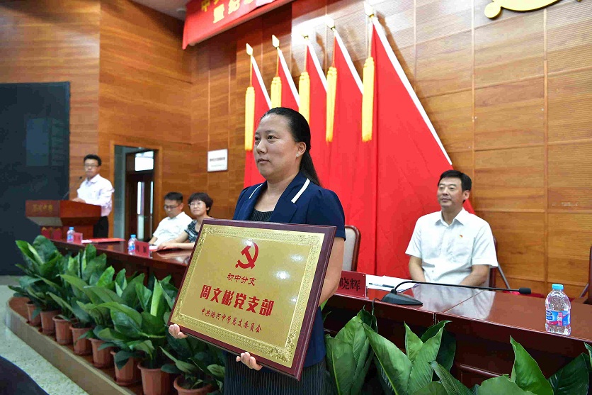 潞河中学党总支为了更好地纪念周文彬同志,在第一个党支部成立90周年之际,命名初中分支为“周文彬支部”,总支书记徐华同志代表潞河中学党总支宣读了命名决定,付晓辉书记为初中分支颁授“周文彬支部”牌匾,初中分支书记李晨松同志接受了牌匾。年度优秀党员、初中分支委员王雷同志代表初中分支发言,表示一定珍惜荣誉,继承先辈遗志,学习先辈精神,发挥党员模范作用,搞好支部建设,为潞河教育再上新台阶贡献力量。中学生业余党校学员代表学员魏笑然发言,表示要学习和继承潞河学长的革命精神,做坚定的马克思主义者,努力学习,增长才干,贡献祖国。