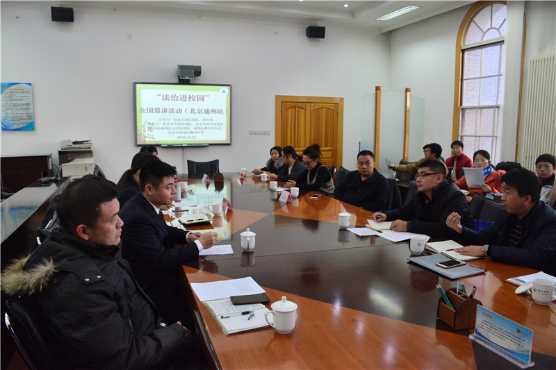 巡讲开始前,巡讲团成员与来自通州区的教师代表、学生代表、家长代表、政协委员代表进行了亲切的座谈。座谈会上,各位代表分别从不同角度对巡讲的工作提出了意见和建议。代表们希望巡讲团的讲座内容更加贴近学生的生活实际,对提高青少年的法治意识,以及增强青少年的自我保护意识及能力起到切实的效果。