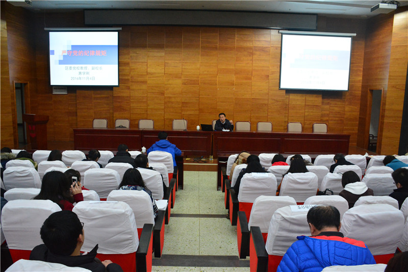 2016年10月24日至27日我党胜利召开第十八届中央委员会第六次全体会议。 为加强学习和领会会议精神,11月4日潞河中学党总支邀请党校惠学刚副校长为潞河中学全体党员做题为“严守党的纪律 做合格党员”的专题党课。此次活动也是潞河中学党总支“两学一做”系列活动的重要组成部分。