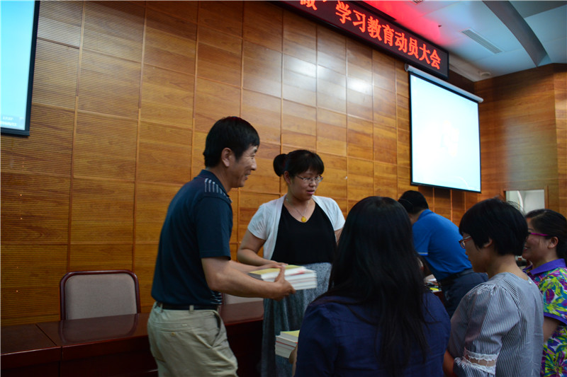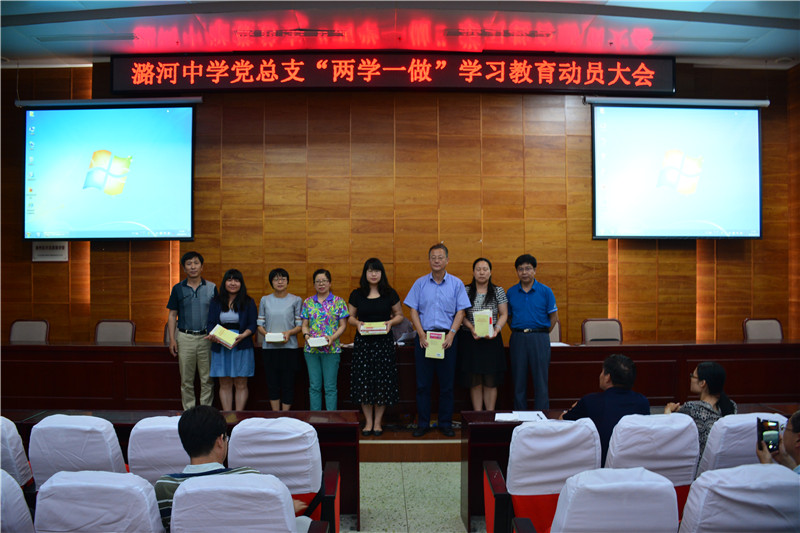 动员大会上,全体党员首先认真学习了中共中央办公厅印发《关于在全体党员中开展“学党章党规、学系列讲话,做合格党员”学习教育方案》并观看了相关视频。副书记号召党员们在工作生活中亮明身份,接受大家监督,做合格的党员,并与徐华书记,张晓航组长一道向分支书记发放了相关学习资料,潞河中学党总支还为每位党员配发了学习书籍《习近平总书记系列重要讲话读本(2016年版)》。会上,在总支书记的号召下全体党员当场佩戴党徽。徐华书记还对党员同志们提出两点要求:一要做一个明白的人,讲规矩守纪律,加强学习,从少数到全体,从集中到经常,带动身边的人去学习;二要做一个有心的人,提升理论政治修养,打开视野,准确解读“四讲四有”,基础在学,重点在做。最后张晓航同志布置计划要求,他表示相信各位党员会全心投入“两学一做”,充分发挥正能量。希望大家争当先锋楷模,在工作岗位上敬业爱生,积极参与教育深综改,推进改革,培养有担当的学生,弘扬潞河教育精神。