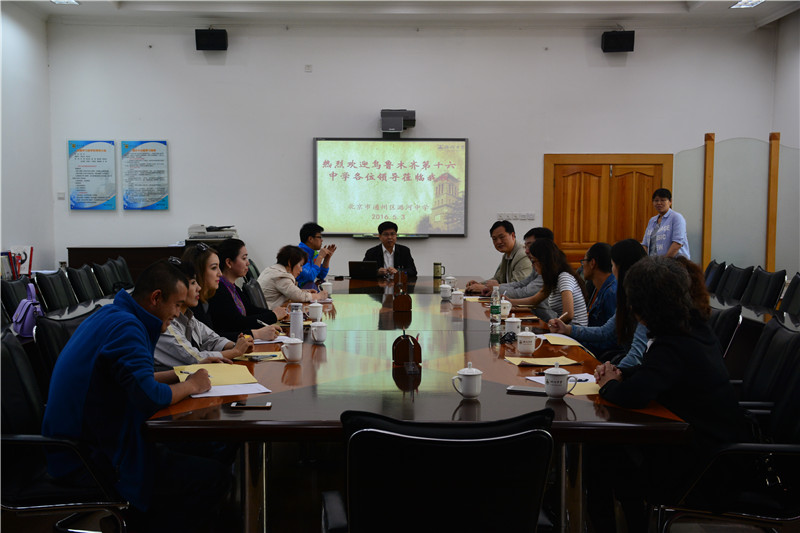 5月3日乌鲁木齐市第十六中学新疆民汉合校办学实践研究课题组成员一行13人来潞河中学访问。徐华校长在红楼202亲切接待了他们。