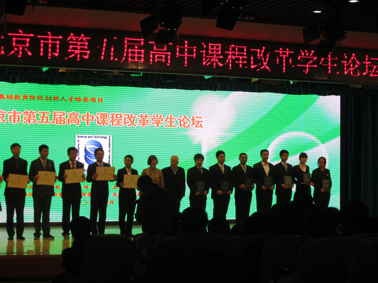 会上,我校董泊宁同学代表2011级学员发言。董泊宁、戎澄同学作为翱翔计划2011级学员顺利结业,徐华、朱晓林、边良老师被评为翱翔计划优秀指导教师。我校陈子豪同学及我校指导的日坛中学韩玺学员在第五届高中课程改革学生论坛上做了精彩的发言。