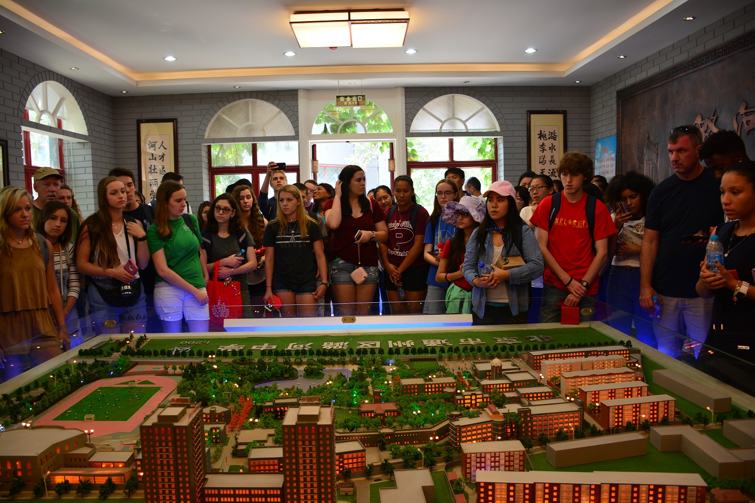 6月9日上午,正值端午节,来自美国德克萨斯州的梨城高中与道森高中的一行49名师生来到潞河中学参观访问。
