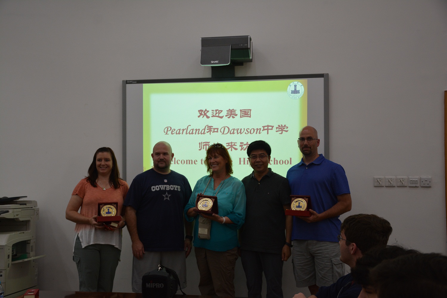 我校五名教师于2015年10月参加通州区教委组织的赴美教育考察团。当时,教师们走进梨城高中和道森高中,近距离体验美国教育管理和课程模式。今年,梨城高中与道森高中组织夏令营来中国参观访问,特意联系我校,近距离感受中国的教育。