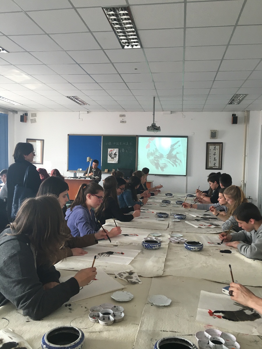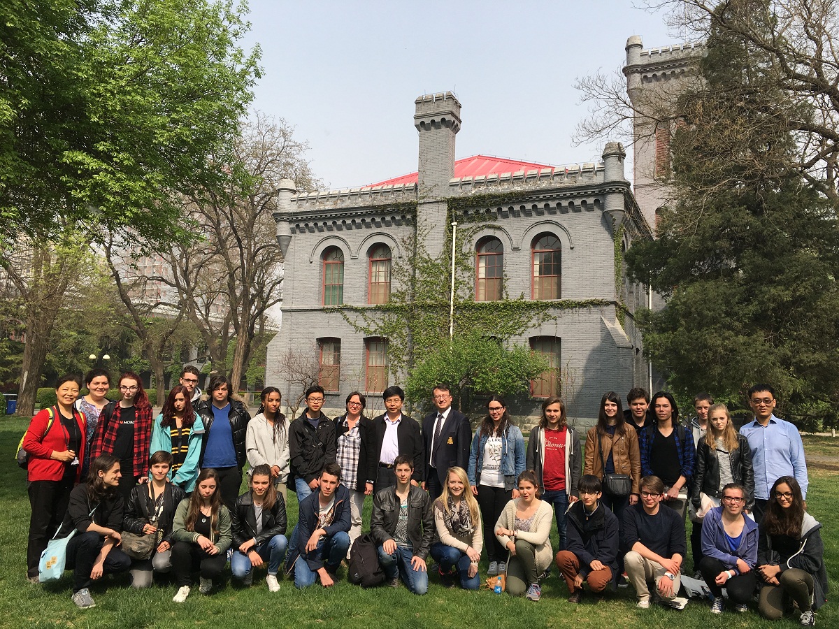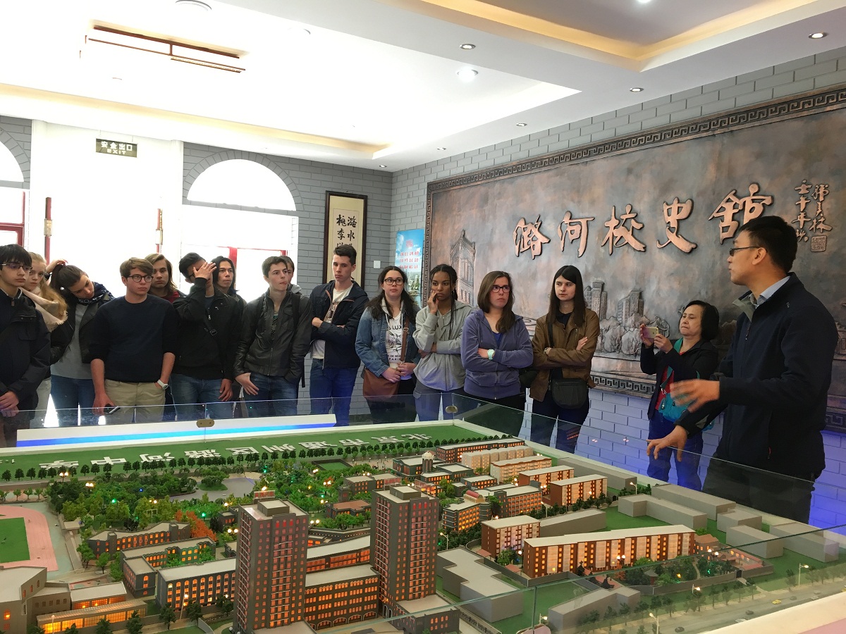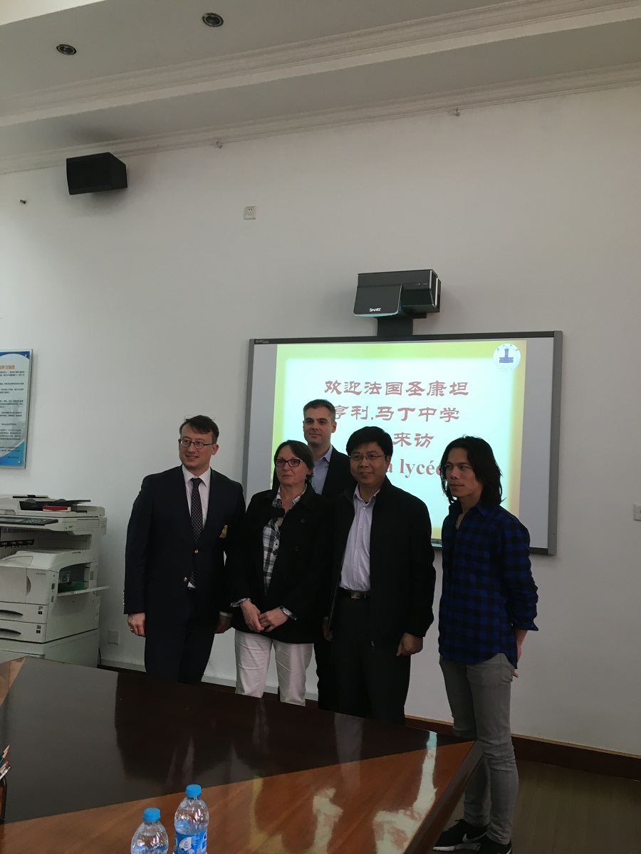 4月13日上午,通州区友好城市法国圣康坦市的亨利.马丁中学师生一行27人来我校交流访问。师生们首先在教工餐厅用餐。餐后,师生们参观了学校的体育馆、游泳馆、校史馆。接下来,学校安排师生们走进潞河艺术课堂:中国画。师生们亲身体验到了中国学校的特色课程,感受到了中国画的魅力,感觉不虚此行。随后,徐华校长在红楼同亨利.马丁中学师生们座谈。徐校长向客人们致欢迎词,介绍了百年潞河的传统与现状。最后,双方交换礼物并合影留念。亨利.马丁中学师生们对我校悠久的历史、深厚的文化底蕴和美丽的校园环境留下了深刻的印象。