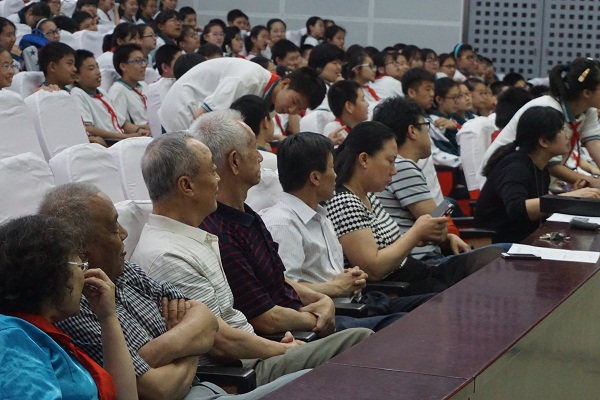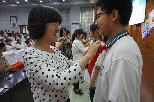 岁月如歌,童年为曲;人生如画,童年为色。为了引导初一年级学生郑重地告别孩童时代,学会理解、感恩和珍惜,自信地拥抱青春、开启逐梦之旅。近日在潞河中学第一报告厅隆重举行了主题为“告别童年 拥抱青春 梦想启航”——初一年级退队仪式暨 “六一”庆祝活动。通州区关心下一代协会老师、潞河中学谢宏春副校长、党总支副书记孟洪峰老师、李晨松副校长和初一年级全体师生参加了庆祝活动。同学们通过朗诵、演唱、音乐剧、民乐演奏、游戏互动、视频及梦想海报展示等多种形式将“告别童年”“理解父母”“感恩老师”“热爱集体”“梦想启航”的含义充分诠释。一直关心潞河学子成长的老教师们也为孩子们表演了精彩的节目。全场掌声不断。退队仪式上,班主任老师亲手为同学们摘下了红领巾。这一刻,同学们告别了少先队员的身份,以崭新的面貌向新的人生征程进发。党总支孟洪峰副书记孟洪峰老师发表了热情洋溢的讲话并现场朗诵诗歌《青春》,对孩子们寄予深切期望。