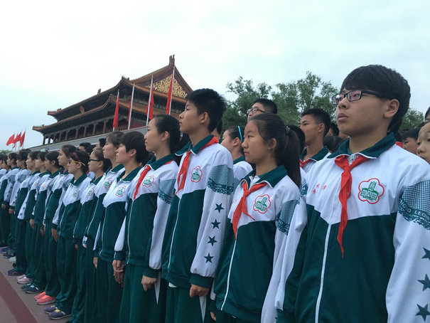 2016年6月1日,我校应市教委、区教委统一安排,组织初一、预科年级师生到天安门观看升旗仪式。